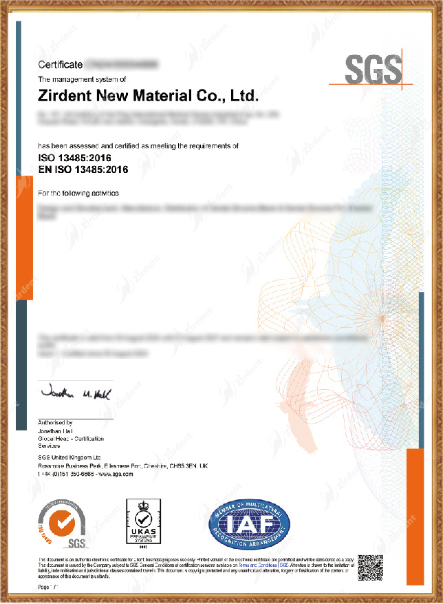 Zirdent is committed to its vision of “Let more people use safe & comfortable materials”, and aims to be the 'All-in-one zirconia block expert,' upholding values of customer service, innovation, and responsibility, with the slogan 'Make smile easier.' Certified with CE under MDR, FDA Cleared and ISO 13485:2016, Zirdent is dedicated to dental industry excellence.
